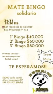 El mismo se realizará el 24 de noviembre en el SUM del la Escuela N°711 a las 16 horas. Quienes puedan colaborar deben comunicarse al 2975021107.