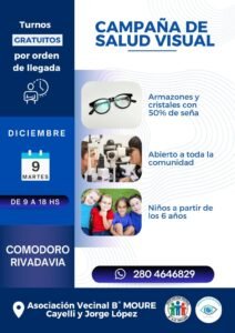 La Asociación Vecinal del barrio Moure llevará adelante una campaña de salud visual abierta a toda la comunidad el próximo martes 9 de diciembre, de 9 a 18 horas, en su sede ubicada en Cayelli y Jorge López.