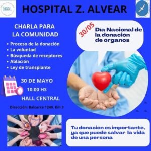 En ese marco, el Hospital Alvear brindará una charla informativa acerca de la importancia de la donación de órganos.