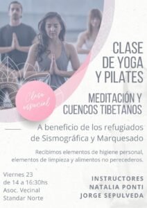 Este viernes 23, se llevará adelante una clase especial de yoga y pilates, que incluirá meditación y cuencos tibetanos, con el objetivo de colaborar con las familias refugiadas de los barrios Sismográfica y Marquesado, afectadas por el movimiento del Cerro Hermitte.
