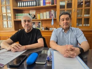 El profesor Adrián Ñancufil, de la Facultad de Humanidades y Ciencias Sociales de la UNPSJB, y Julio Rivas, del programa PAMI, explicaron que la actividad responde a una demanda creciente en la comunidad relacionada con consultas de orden jurídico y notarial que afectan a las personas mayores y a sus allegados.