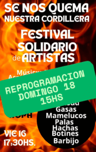 “Todos por la Cordi”, una propuesta solidaria impulsada por artistas locales, fue reprogramado para este domingo a las 15 horas en el Parque de la Ciudad, debido a los fuertes vientos previstos para la jornada. El evento tiene como objetivo reunir donaciones para asistir a las personas afectadas por los incendios en la región cordillerana.