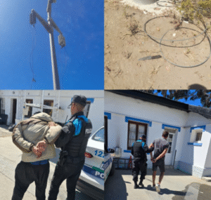 Este jueves alrededor de las 13:30 horas, personal policial intervino en el Camino Alternativo Roque González, en inmediaciones del predio de Pecom, tras detectar a dos sujetos cortando cables de una palmera de alta tensión.