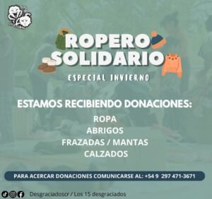 El grupo de teatro Los 15 Desgraciados lanzó una nueva edición de su Ropero Solidario – Especial Invierno, con el objetivo de acompañar a las personas que más lo necesitan durante la temporada de bajas temperaturas en Comodoro Rivadavia.