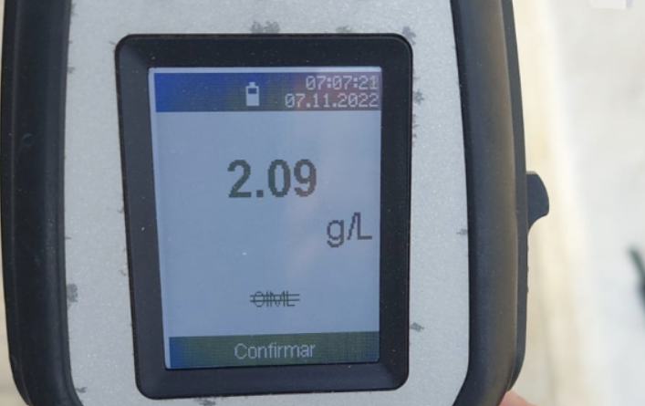 Por otro lado, personal de Tránsito le practicó un examen de alcoholemia arrojando 2.09 g/l. Se procedió a labrar el acta de infracción correspondiente y el secuestro de la motocicleta.