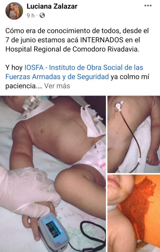 A traves de redes sociales, Luciana Salazar, la mamá de Gianluca explicó al respecto “Cómo era de conocimiento de todos, desde el 7 de junio estamos acá INTERNADOS en el Hospital Regional de Comodoro Rivadavia”