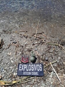 Luego de varias horas de trabajo, el personal interviniente logró la detección y secuestro de una granada de mano de ejercicio de Fabricaciones Militares, modelo FMK8, la cual fue retirada del lugar conforme a los protocolos de seguridad vigentes y puesta a disposición de la autoridad judicial competente.