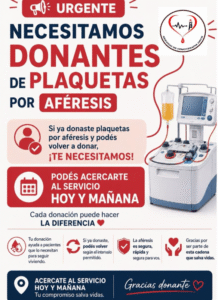 Desde el Banco de Sangre del Hospital Regional lanzaron un pedido urgente a la comunidad para sumar donantes de plaquetas, ante la alta demanda de este componente esencial para tratamientos médicos.