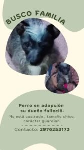 Desde la publicación se solicita la colaboración de quienes puedan brindarle un lugar seguro y responsable, resaltando la importancia de la adopción solidaria para darle al perro una nueva oportunidad de vida. Los interesados comunicarse al 2976253173 o con Angie.