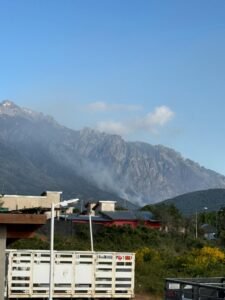 Para este martes en el lugar del incendio se espera que la temperatura máxima alcance 20 °C y una mínima humedad relativa del 25%, mientras que el viento comenzará a aumentar a partir de media mañana con velocidades de 25 – 35 km/h del sector oeste, con ráfagas de 40 – 60 km/h.