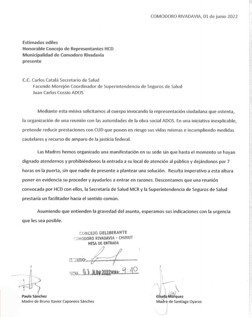 Este miércoles presentaron una nota al Concejo Deliberante, al Municipio y a la superintendencia de seguros de Salud, para que tomen intervención ante la grave falta de la obra social