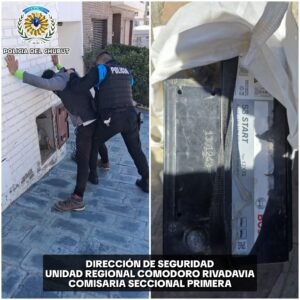Este martes, alrededor de las 11:00, personal policial intervino en la intersección de Avenida Rivadavia y Chacabuco, tras ser alertado por el Centro de Monitoreo sobre el robo de una batería de un vehículo.