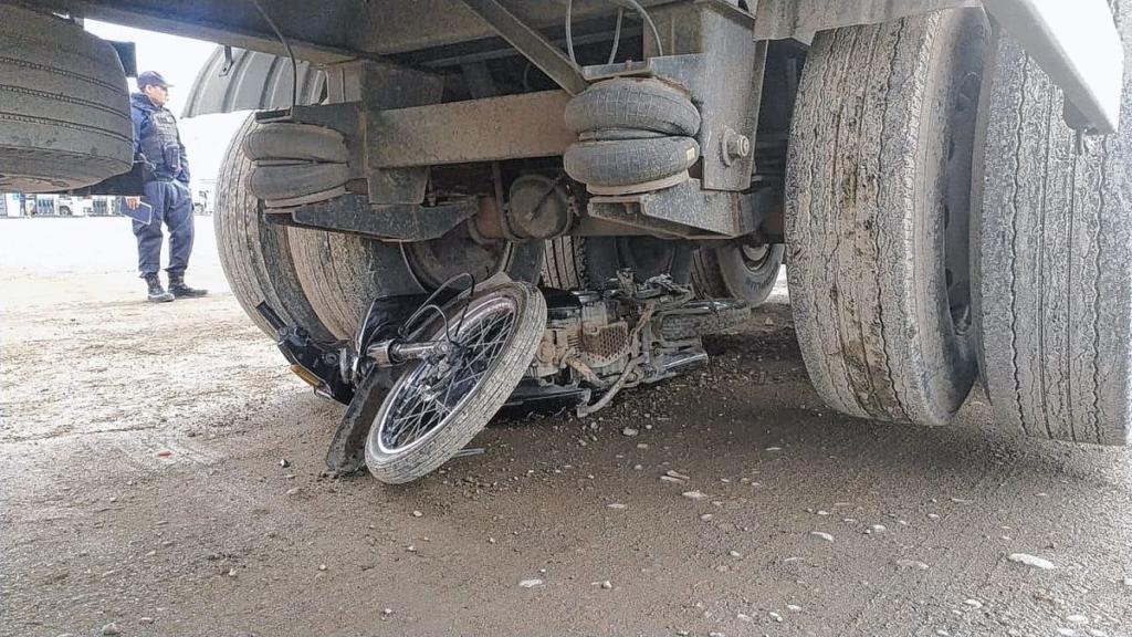 Tiene 18 años, conducía una Yamaha de pequeña cilindrada que chocó con un Volvo cuyo chofer, de 44 años, aparentemente, no lo vio. La moto terminó debajo del acoplado y su conductor tirado a un costado del pesado rodado.