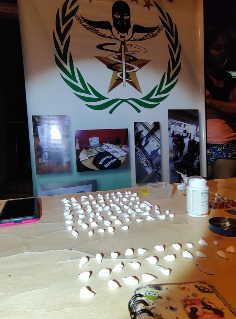 De inmediato, se los detuvo y se comprobó que tenían una mochila con 110 envoltorios de nylon con cocaína y marihuana fraccionados con fines de venta. Además, se incautó una importante suma de dinero en efectivo 3 celulares y otros elementos de interés para la investigación.