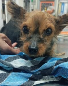 Los veterinarios debieron realizarle un enema debido a una fuerte obstrucción intestinal que le causaba un dolor intenso. Ahora, la perrita se encuentra bajo tratamiento con medicación y requiere controles diarios. “Va a ser un proceso largo y duro, pero vamos a ir hasta donde ella quiera”, expresaron desde el refugio que la rescató.