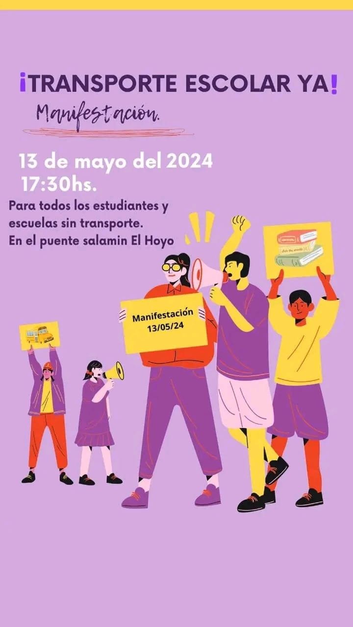 Tras dos meses de reclamos, los estudiantes, vecinos y familias de El Hoyo lanzaron un comunicado, solicitando el acompañamiento de la comunidad ante su pedido por el acceso al transporte escolar: