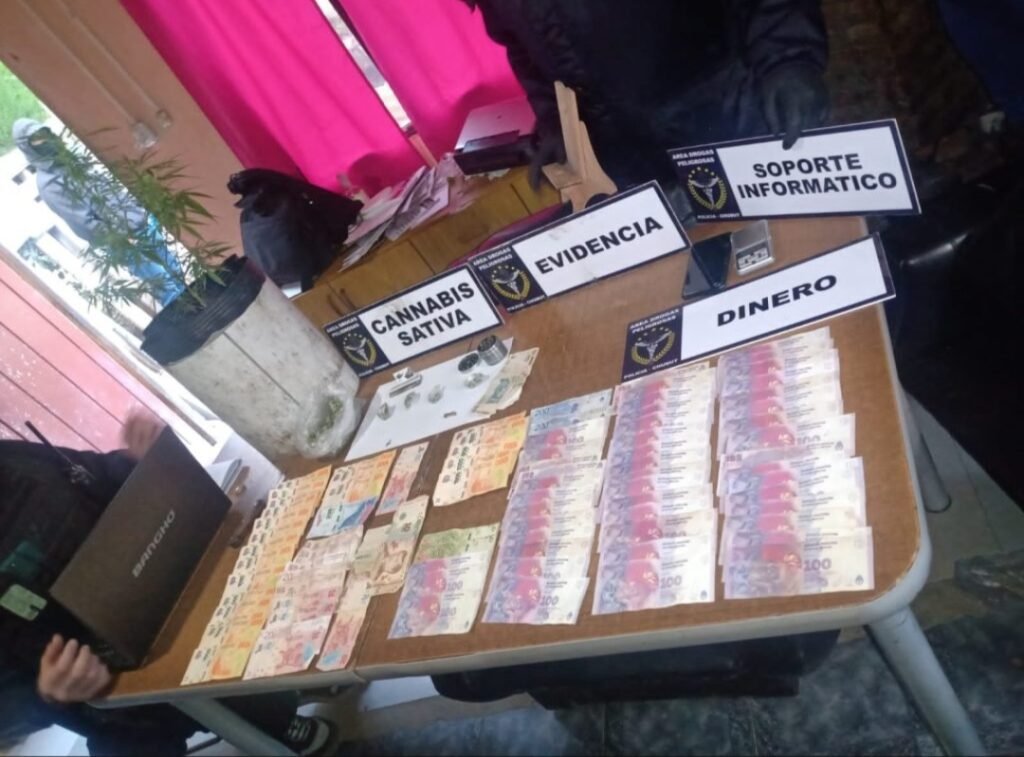 Como resultado de esta diligencia, la División Drogas procedió al secuestro de 100 dosis de estupefacientes, balanza de precisión, dinero en efectivos, utensillos de molienda, 132 semillas, cinco plantas de cannabis Sativa en estado de floración, recortes de polietileno, soportes de almacenamiento de información, un equipo de comunicación con frecuencia policial, con el cual se sospecha que el imputado tenía conocimiento en tiempo real de los movimientos de las autoridades policiales.