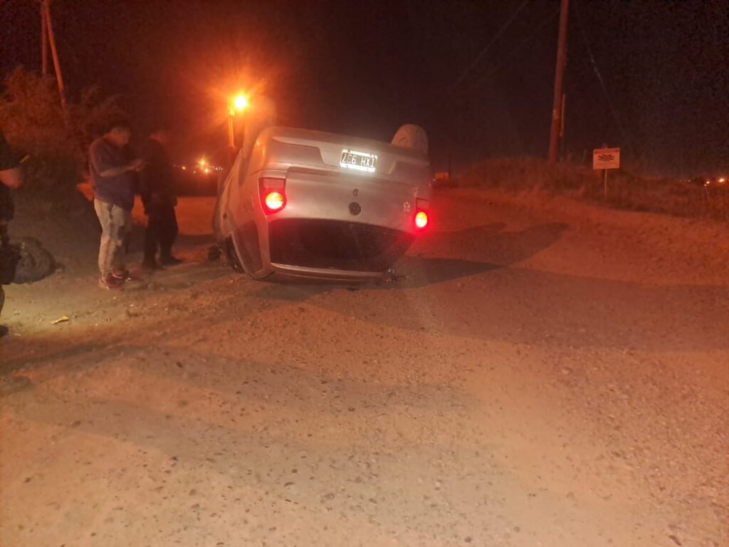 Pasada la medianoche, un automóvil Gol Volkswagen, circulaba por Av. 10 de noviembre frente a la Policía Montada, al subir y llegar la calle R. Tora su conductor perdió el control y volcó.