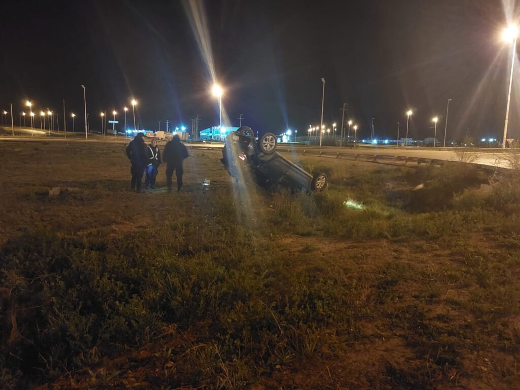 La madrugada del domingo, un Renault Sandero protagonizó un vuelco en la rotonda de ruta 3 y 26. Al arribar personal policial identificó al conductor un hombre de 36 años, domiciliado en Rada Tilly.