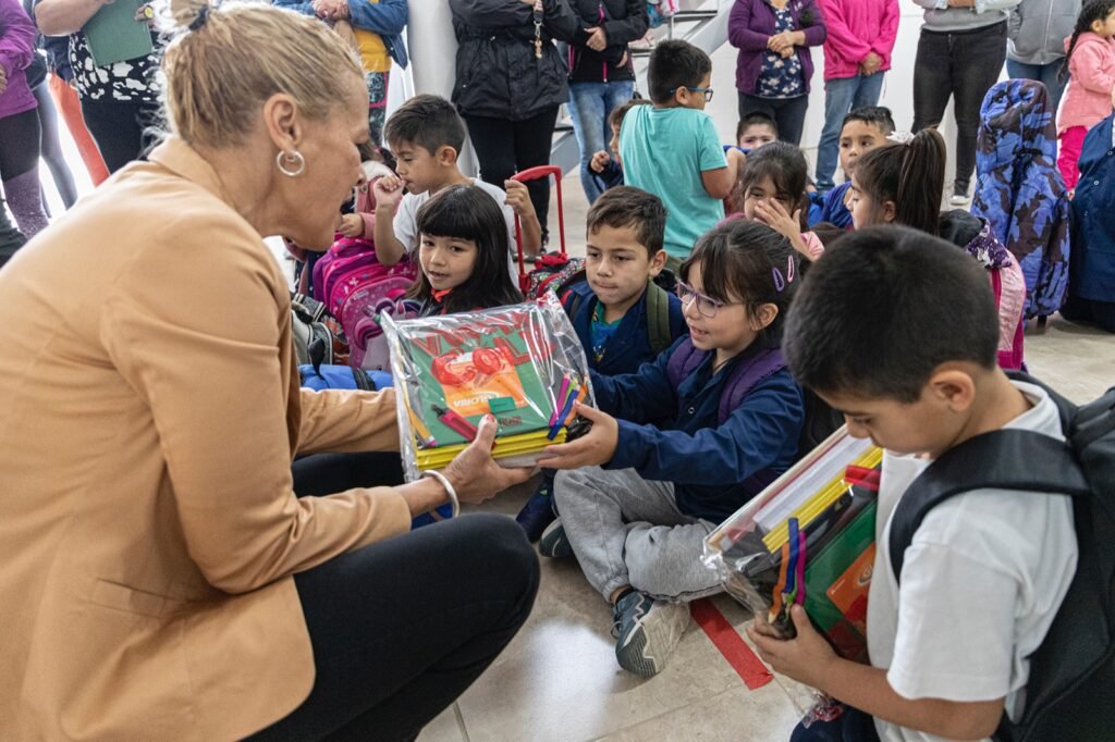 Además este lunes se realizó la entrega de kits escolares en la flamante Escuela Municipal para los alumnos de primer grado que ingresaron en este año lectivo 2023.